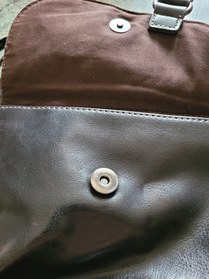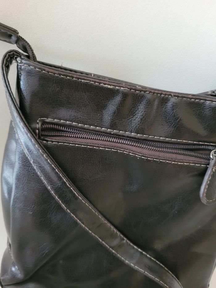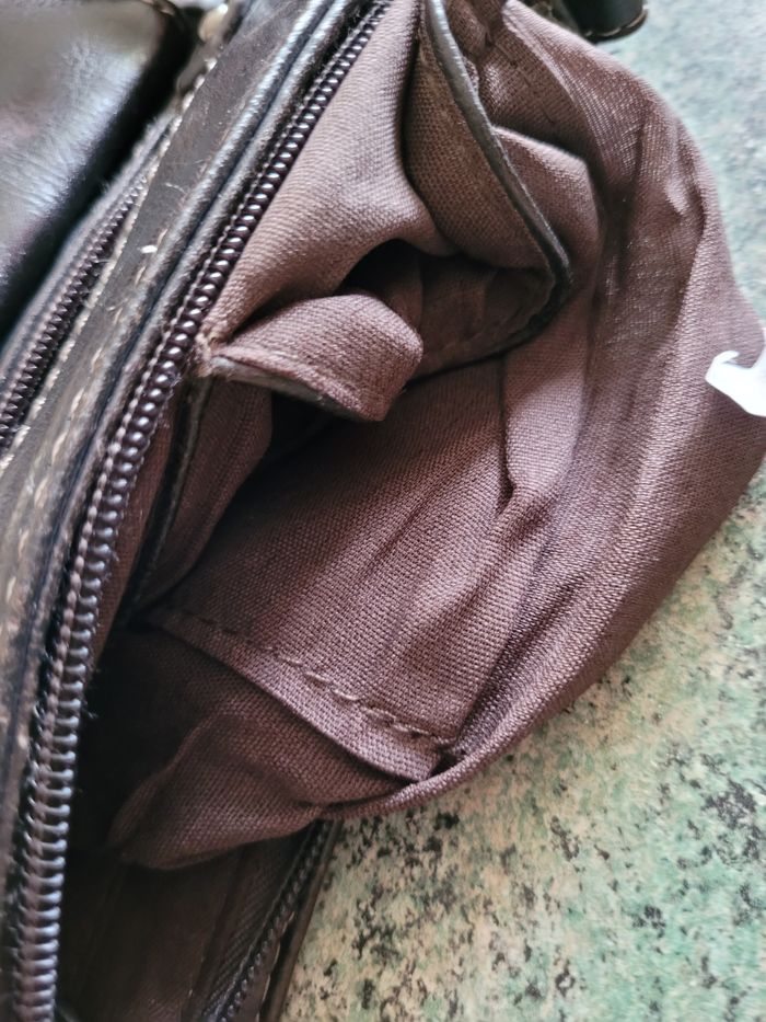 Marron Très bon état Petite pochette devant 20 x 14 cm Grande pochette 22 x 22 cm Petite pochette derrière 19 x 18 cm Épaisseur 5 cm Bandoulière au plus long 62 cm
