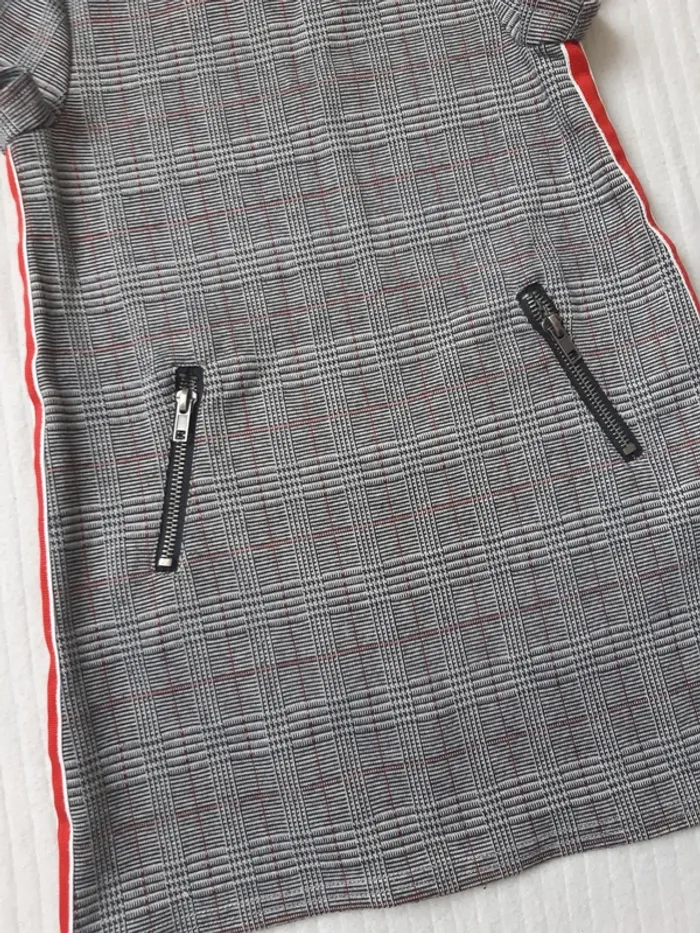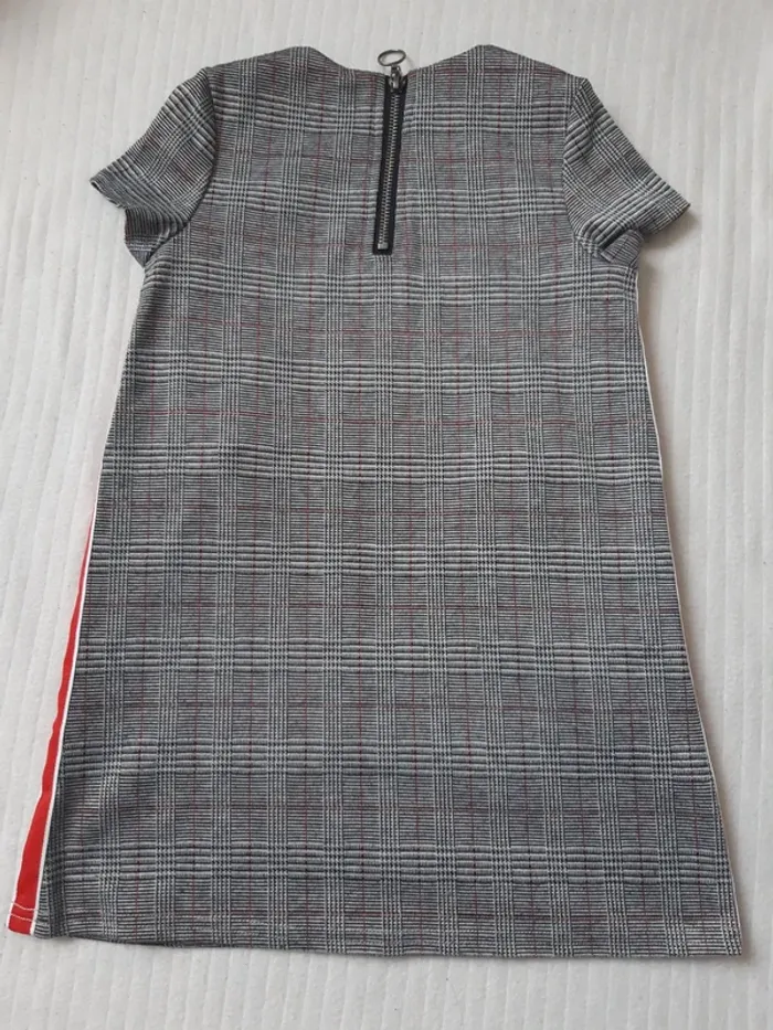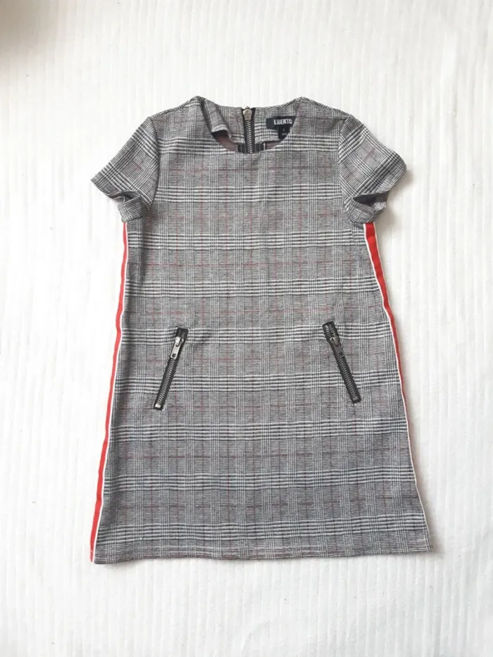Robe Motif carreaux pied de poule Bandes rouge et blanche sur les côtés #anthonyagnes_fille5A