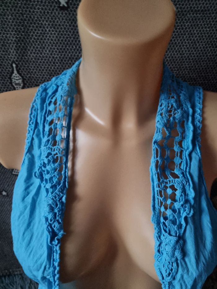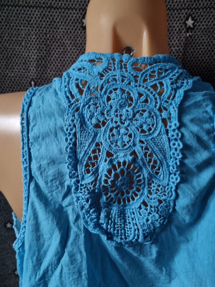 Veste sans manches avec broderie taille 2,reste ouverte,longueur 56cm, largeur 39cm, longueur épaule à aisselle 20cm,largeur aisselle à aisselle 40cm.