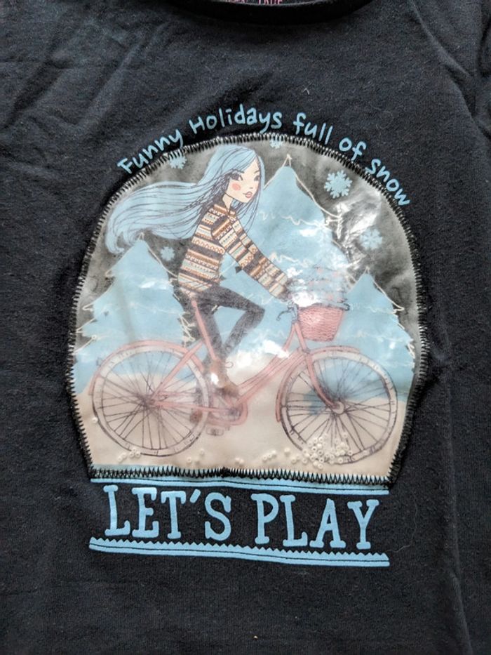 Tee-shirt manches longues 7 ans, marque kloane, le plastique qui contient les perles de neige est un peu terni, sinon pas de défaut Réduction sur les lots Merci d'éviter les envois par vinted go