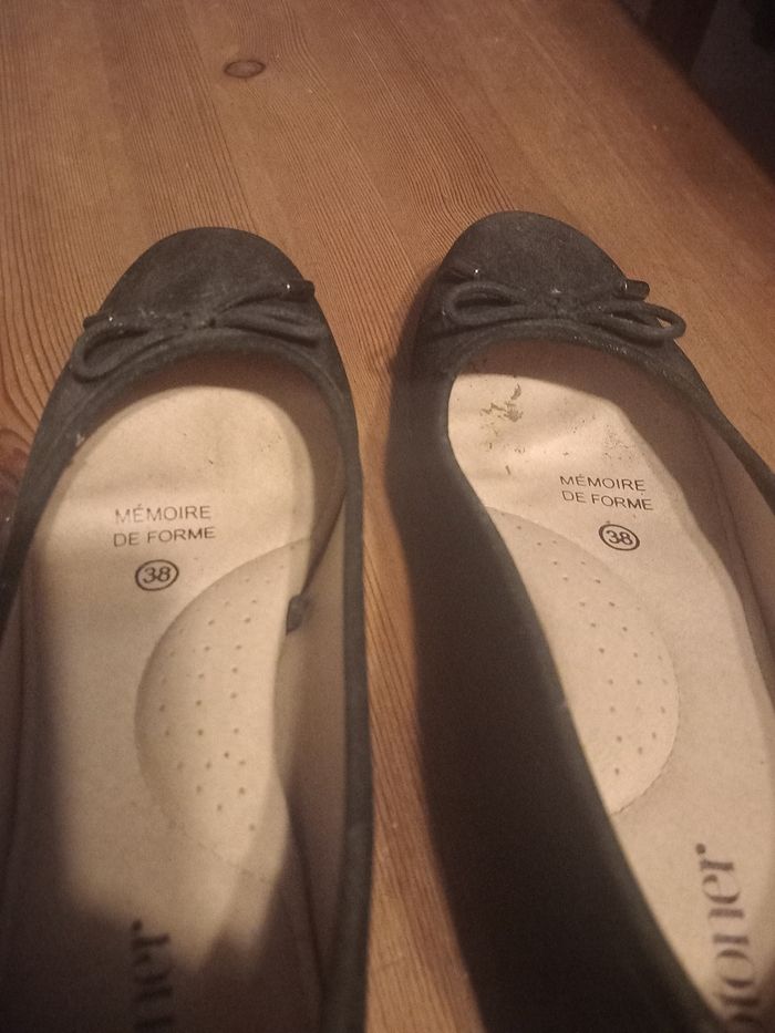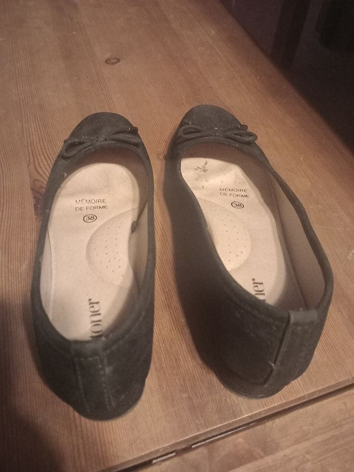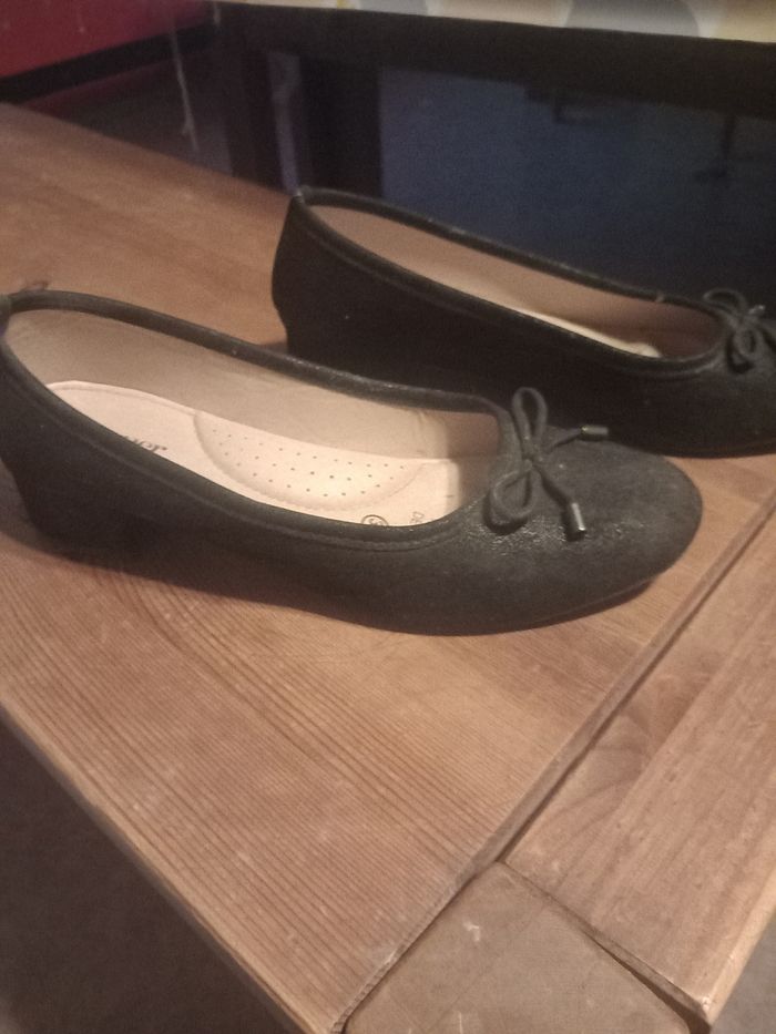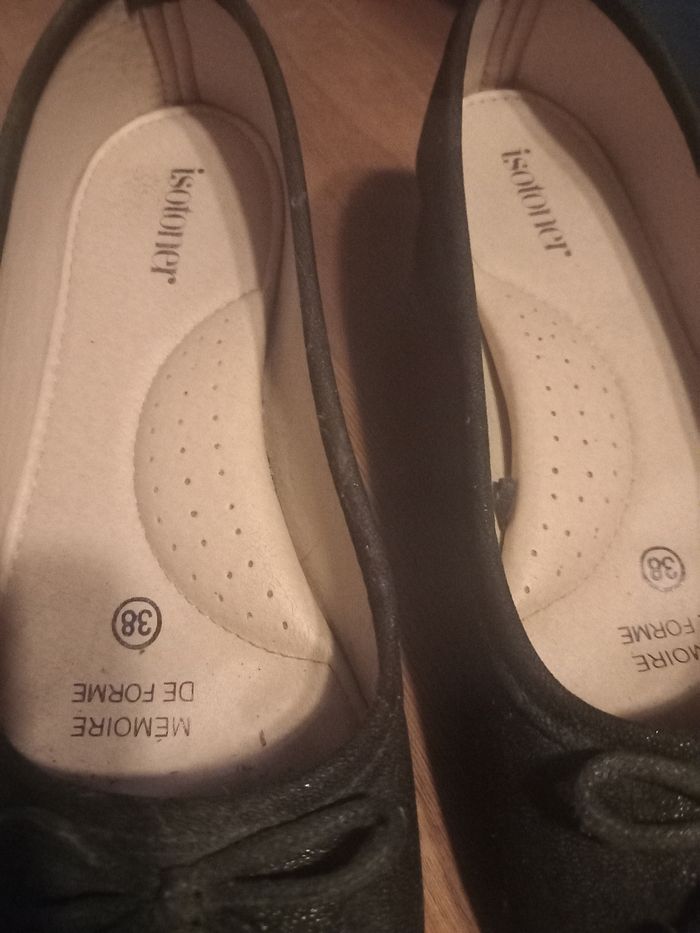 Ballerines à talons femme Avec nœuds Pointure 38 Marque Isotoner Mémoire de forme Couleur noir En bon état Hauteur du talon 3,5cm