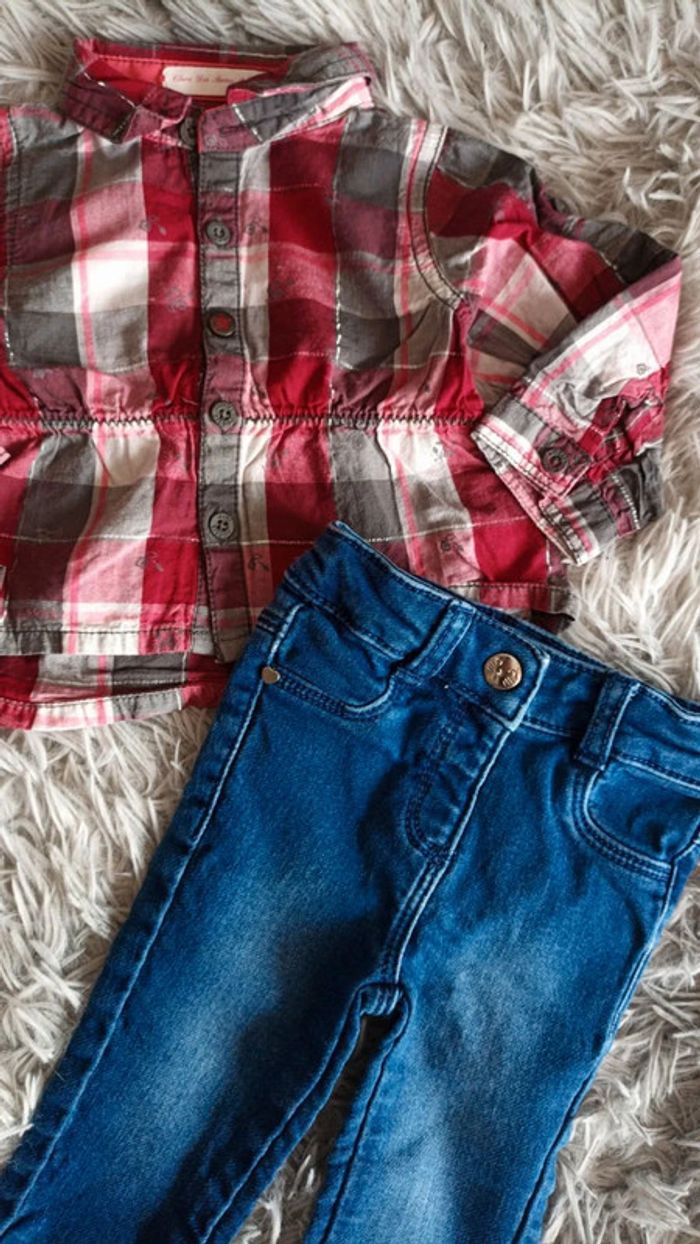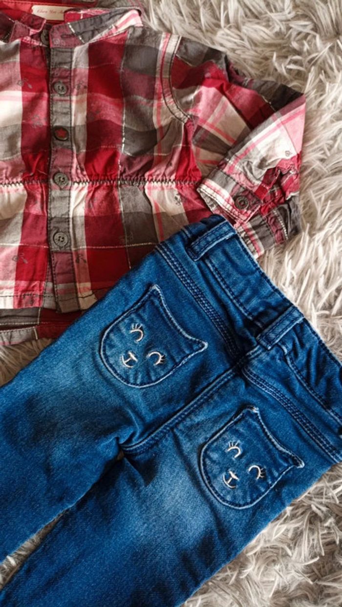Magnifique ensemble trop chou 💐 Petite chemise GĂ©mo 3 mois , excellent Ă©tat aucun dĂ©faut 💐 Petit jean stretch orchestra jamais portĂ©e 💐 #3moisbebefillemelanielylou55