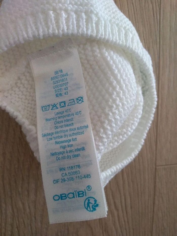 Bonnet blanc bébé mixte Obaïbi 1/3mois - photo numéro 3