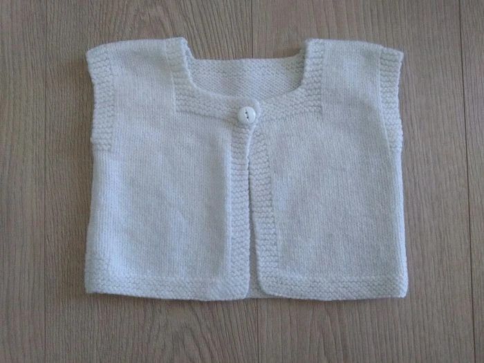 Gilet blanc sans manche maille laine 3 mois tricoté - photo numéro 1