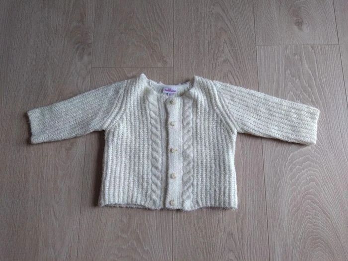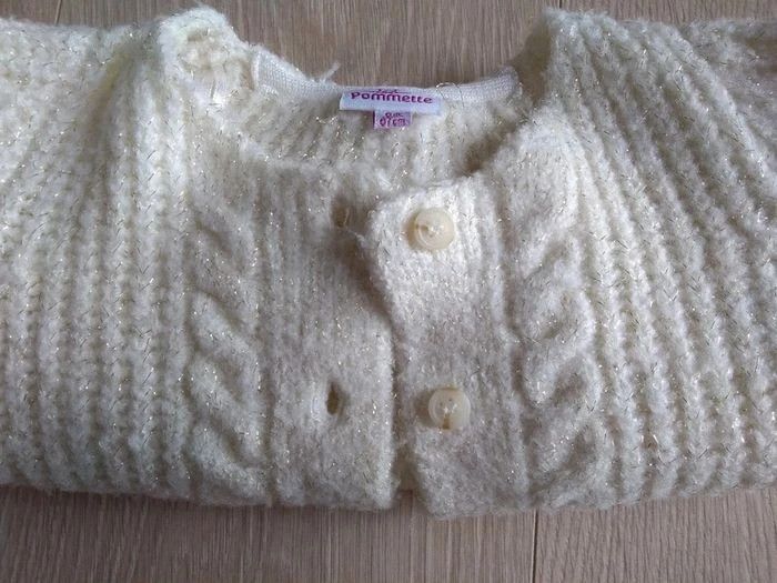 Gilet avec boutons 6 mois Fils dorés Porté 1 fois #lolamalo50bebefille6mois #lolamalo50bebefille
