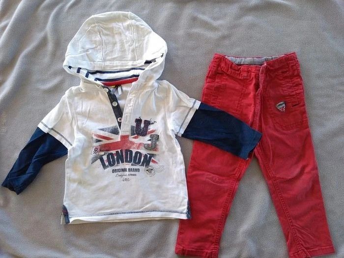 Ensemble garçon sweat London et pantalon rouge Orchestra 18 mois - photo numéro 1