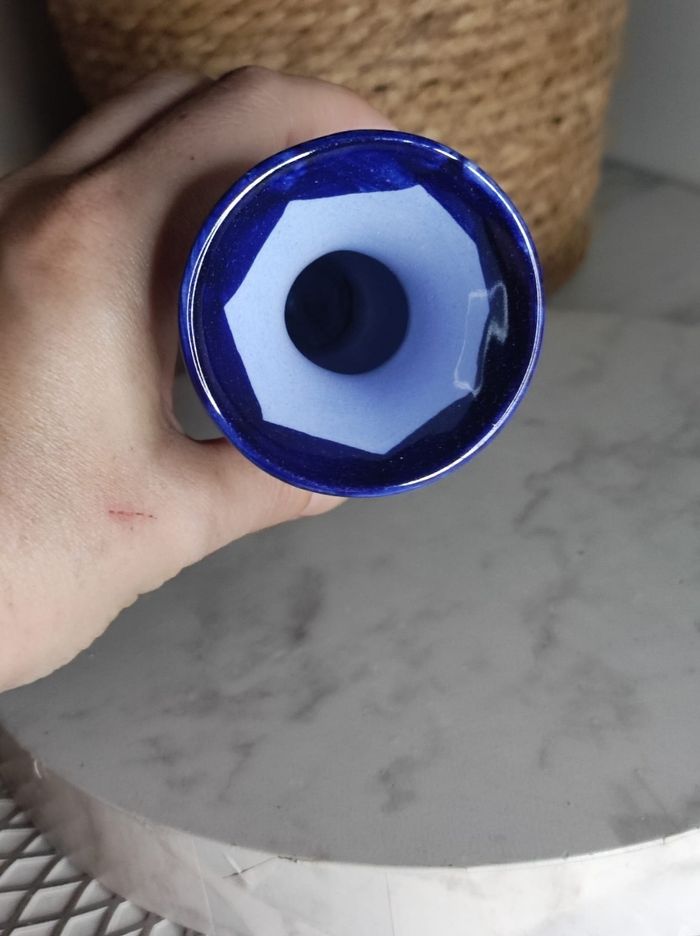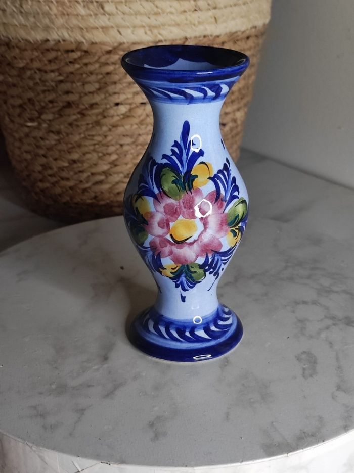 Vase soliflore Portugal peint à la main. fabriqué au Portugal, datant sûrement de 1978. Dimensions H 14,5 x D 5,5 cm