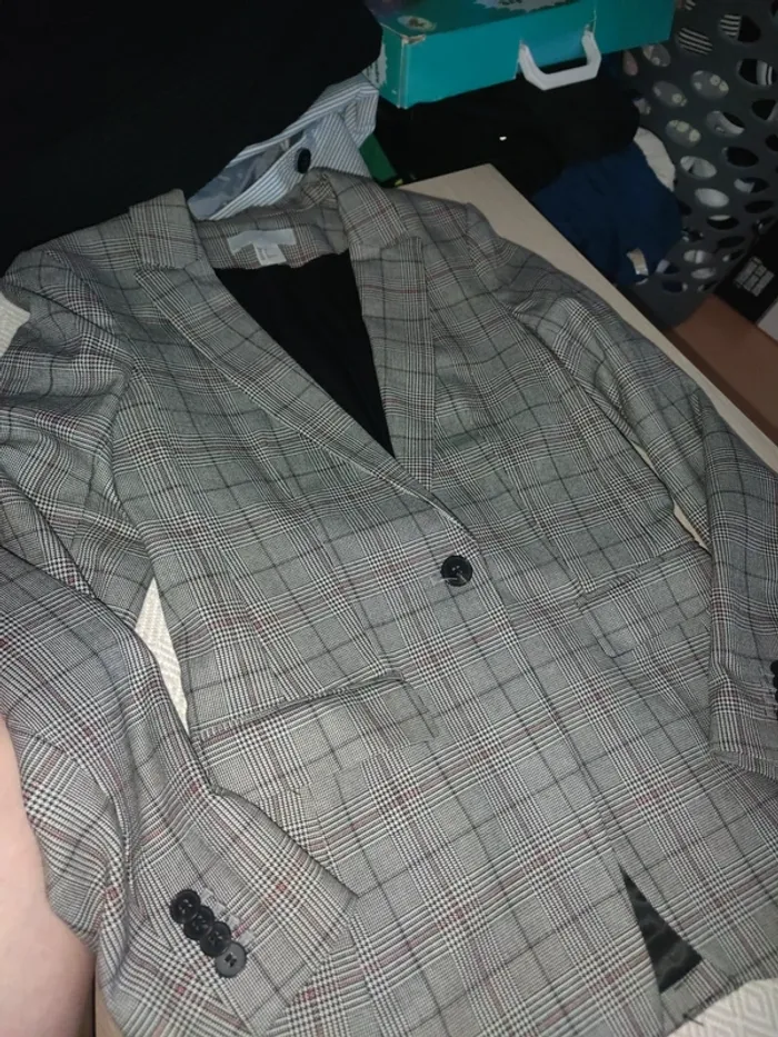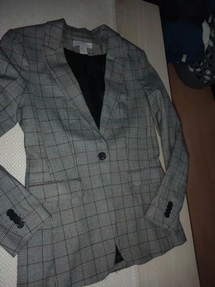 Veste blazer taille 32 12 ans gris bordeaux carreaux - photo numéro 1