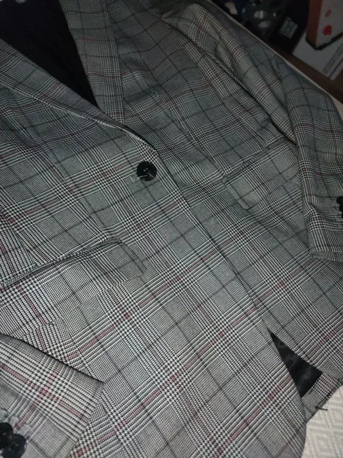 Veste blazer taille 32 12 ans gris bordeaux carreaux - photo numéro 5