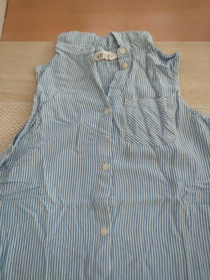 Blouse rayé bleu blanc sans manches 12 ans - photo numéro 1