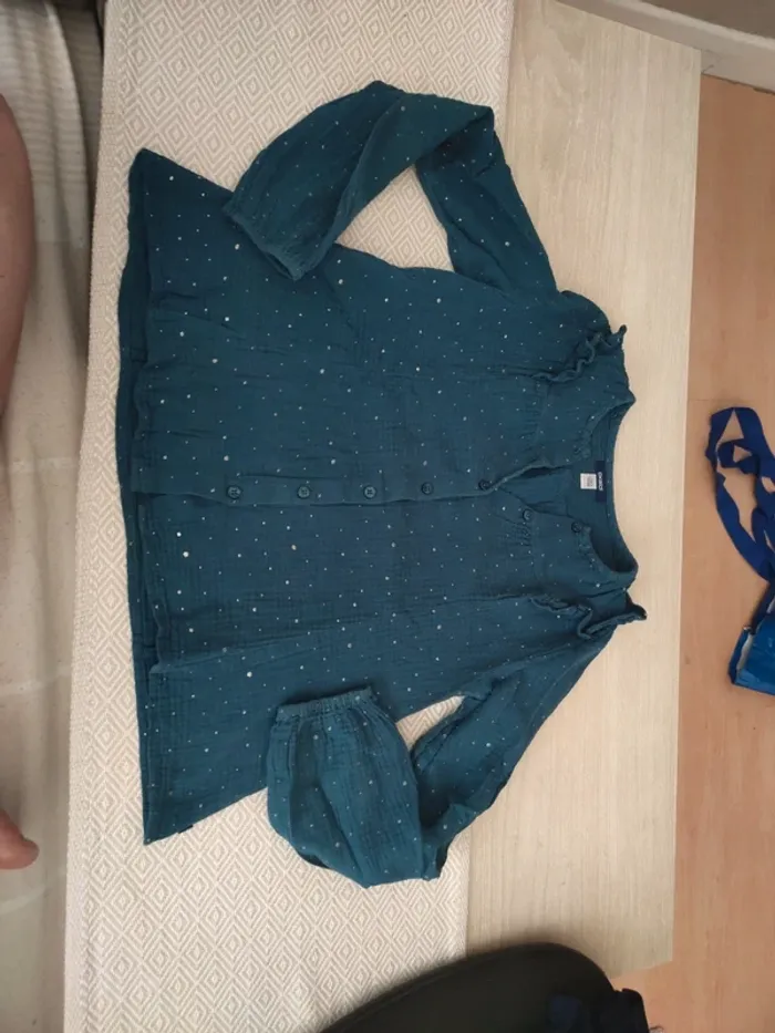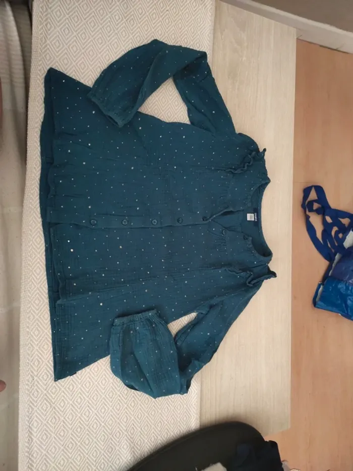 Blouse verte bleu  pois or gaz de coton Okaïdi 12 ans - photo numéro 1