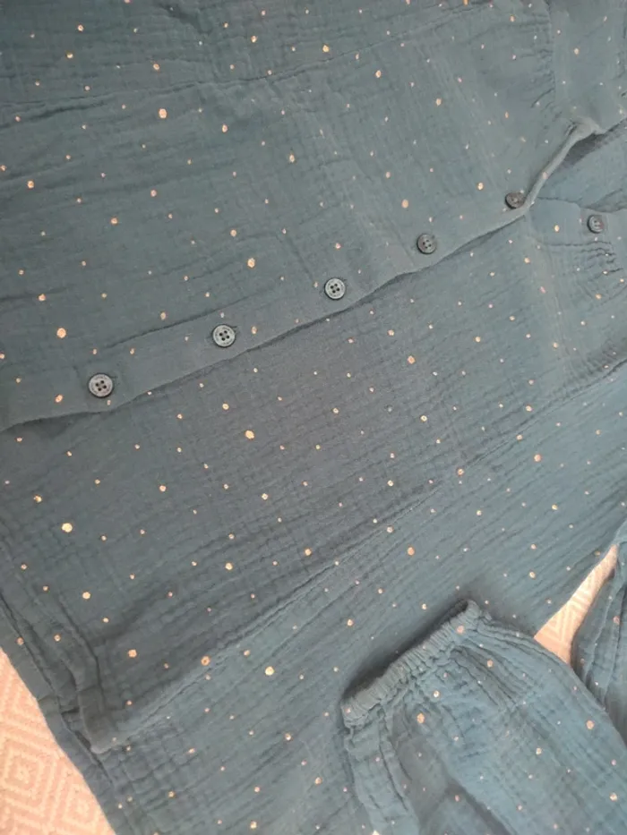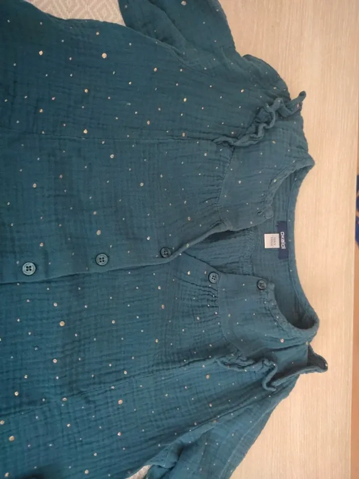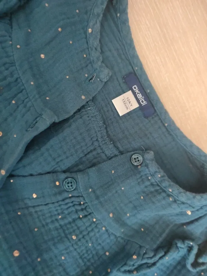 Blouse verte bleu  pois or gaz de coton Okaïdi 12 ans - photo numéro 5