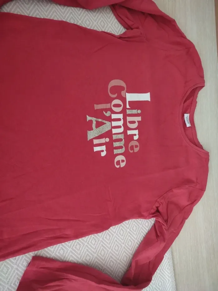 T-shirt manches longues brique rouge Tao 12 ans libre comme l'air