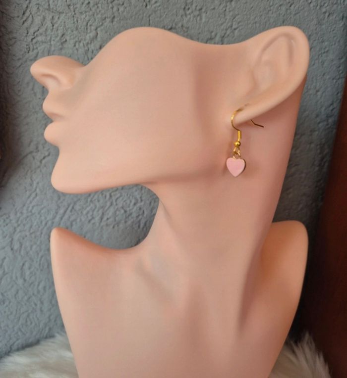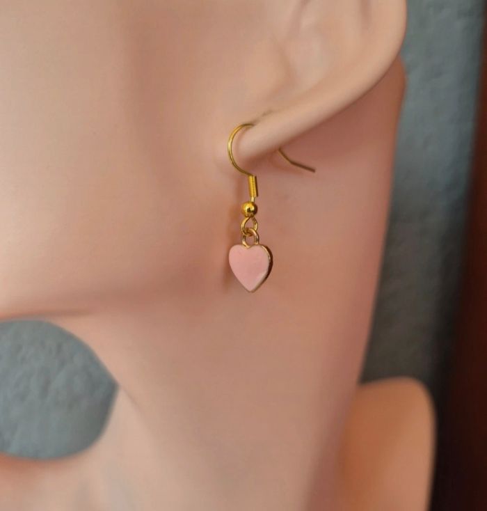 Boucles d’oreilles coeurs en métal rose et doré 💖✨ #Bijoux #Coeurs #Accessoires - photo numéro 3