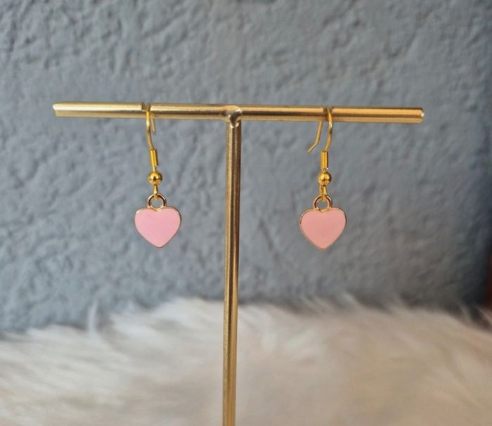 Boucles d’oreilles coeurs en métal rose et doré 💖✨ #Bijoux #Coeurs #Accessoires - photo numéro 1