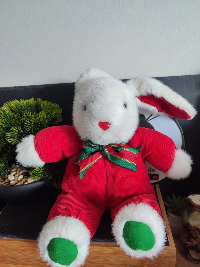 peluche lapin vert blanc rouge noeud clever europe Assis Ancien Vintage PE0251 - photo numéro 1