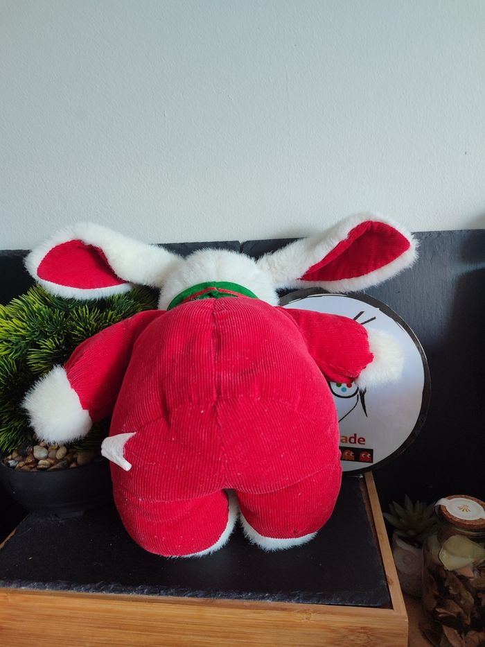 peluche lapin vert blanc rouge noeud clever europe Assis Ancien Vintage PE0251 - photo numéro 2