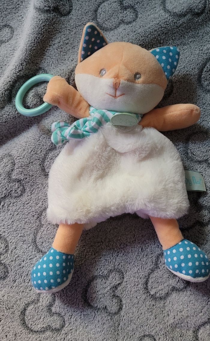 Joli doudou renard avec grelots et tissu bruissant aux oreilles Comme neuf