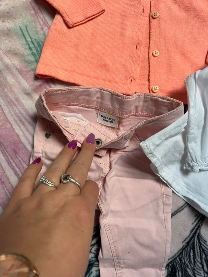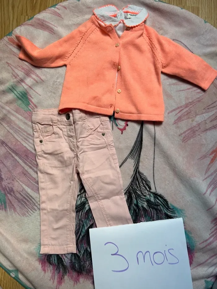 Ensemble 3 pièces Gilet + blouse + jeans #belindatrtfille3mois