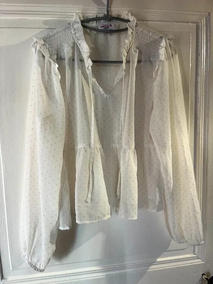 Blouse blanche transparente à pois jennyfer taille L #mamikro2 #mamikro2blouse #mamikro2taillel #blouse #transparente #blousetransparente #jennyfer