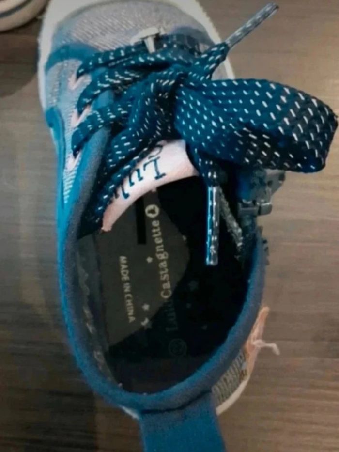 #audreylb49chaussures taille= p22 marque= lulu castagnette couleur = rose . bleu motif= a paillettes defaults= sans tres bon etat a fermeture eclair sur les côtés