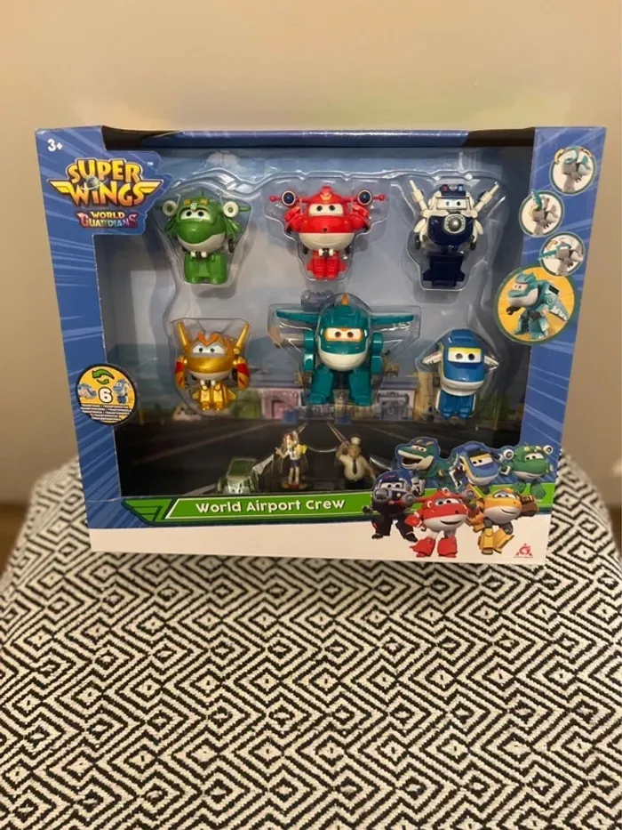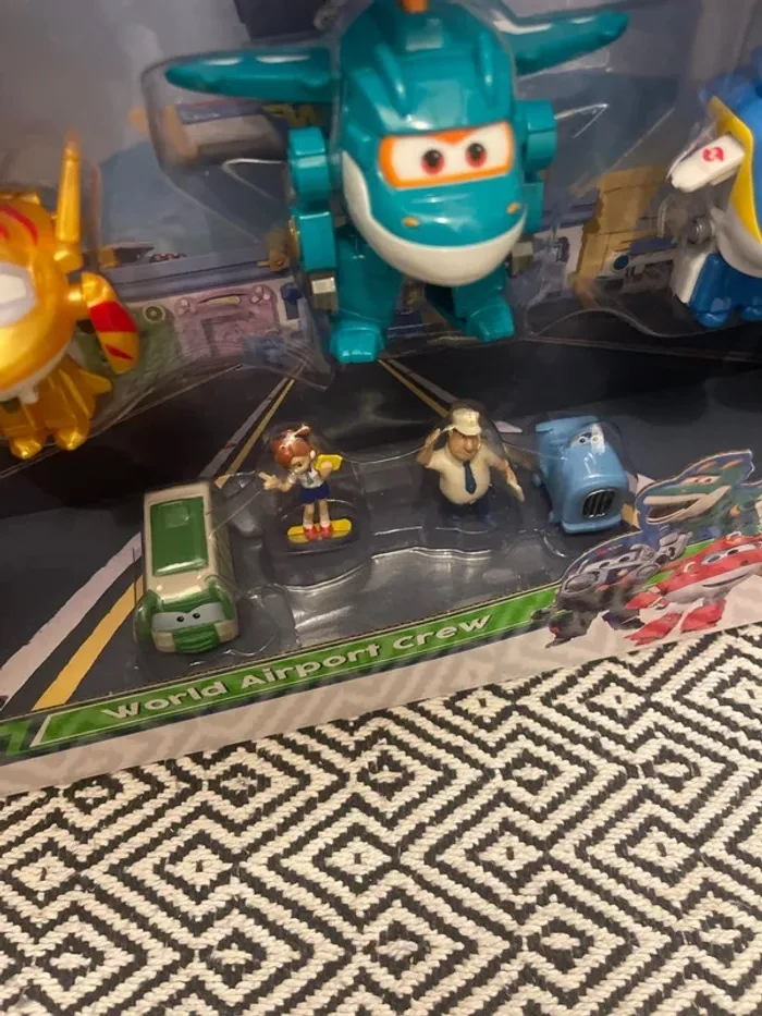Paré au décollage, magnifique coffret Super Wings world gardians, World Airport Crew, Jett, Paul, Mira, Golden Boy, Tony et Tino + Bonus personnages