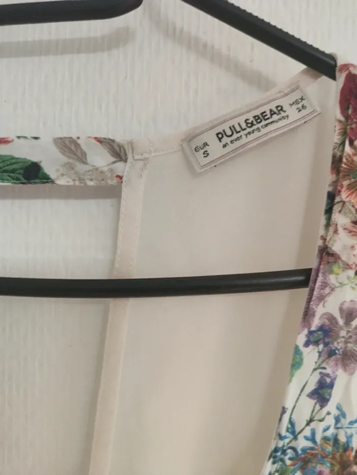 Robe blanche fleurie - taille S. D'occasion, en excellent état. Dos nu en V, deux poches avant. <<Pull&Bear>> 100% polyester.