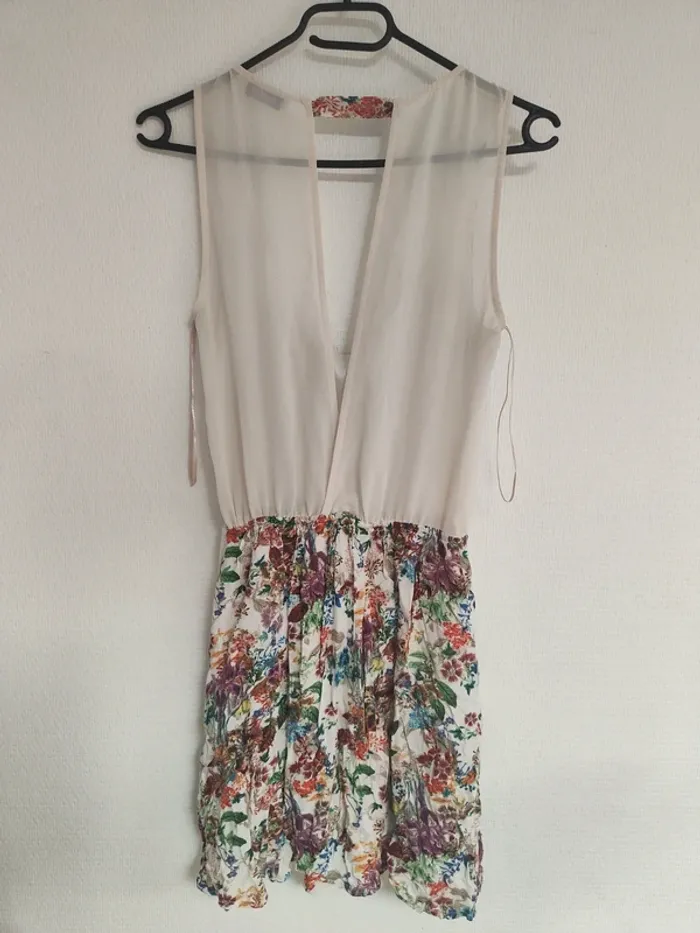 Robe blanche fleurs couleurs - S - photo numéro 1