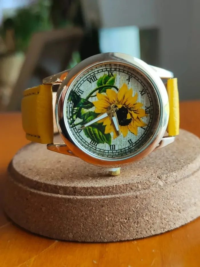 Montre tournesol jaune, style rétro élégante - photo numéro 1