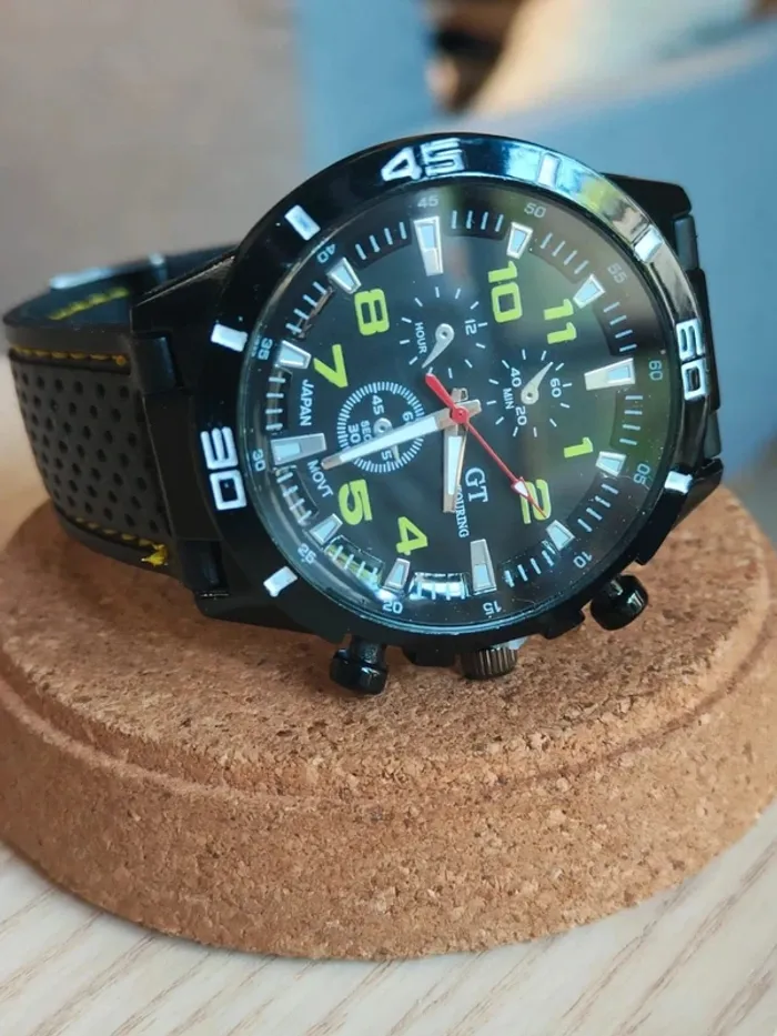 Montre noire-vert, style sport auto, men