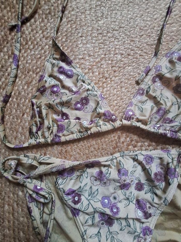 Couleur mordorée très flatteuse sur une peau bronzée Petites fleurs argentées dans l imprimé Comme neuf