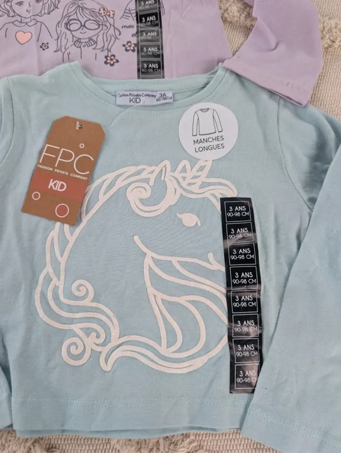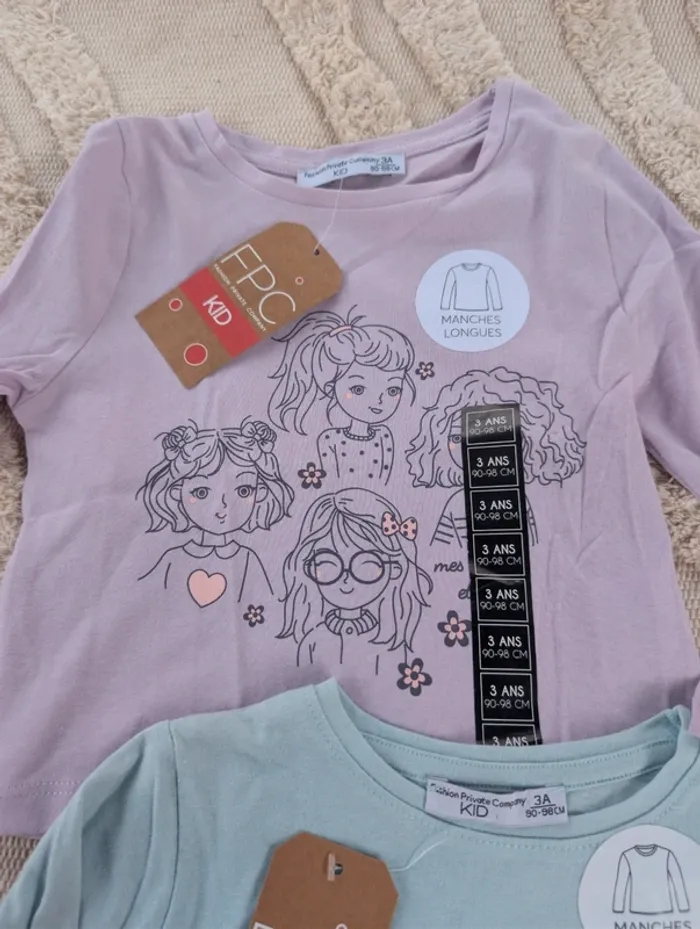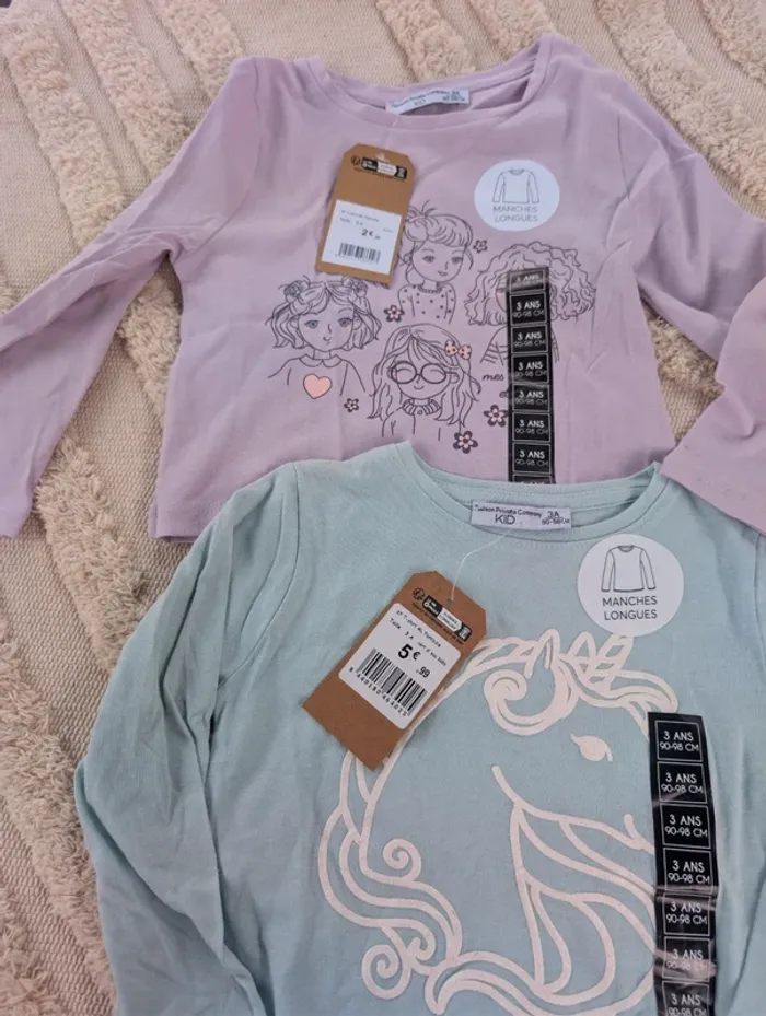 Lot de 2 T-shirts manches longues Fille 3 ans 90/98cm Neuf avec étiquette #fpc #neuf #tshirt #lot #enfant