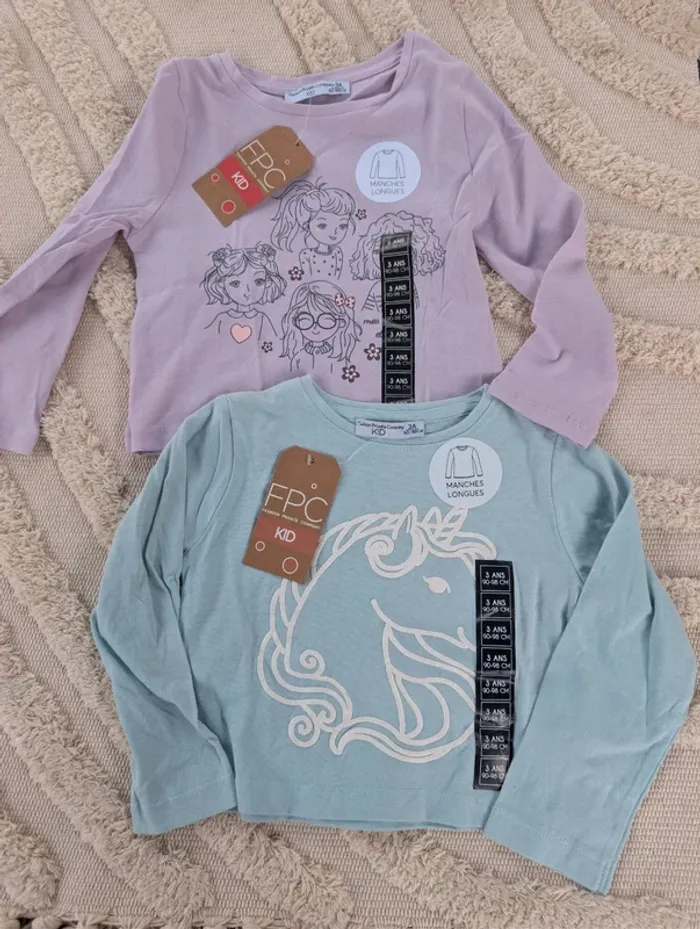 Lot de 2 t-shirts manches longues 3 ans neuf fpc - photo numéro 1