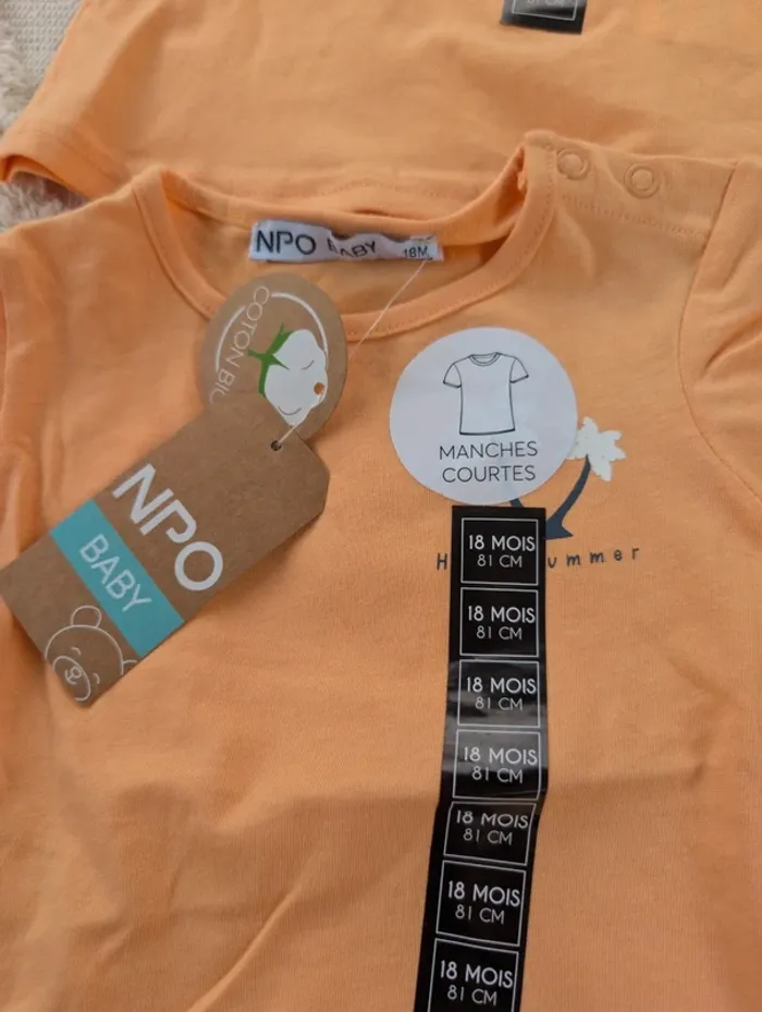 Lot de 2 t-shirt manches courtes Orange Neuf avec étiquette 18 mois 81 cm #fpc #neuf #tshirt #lot #enfant