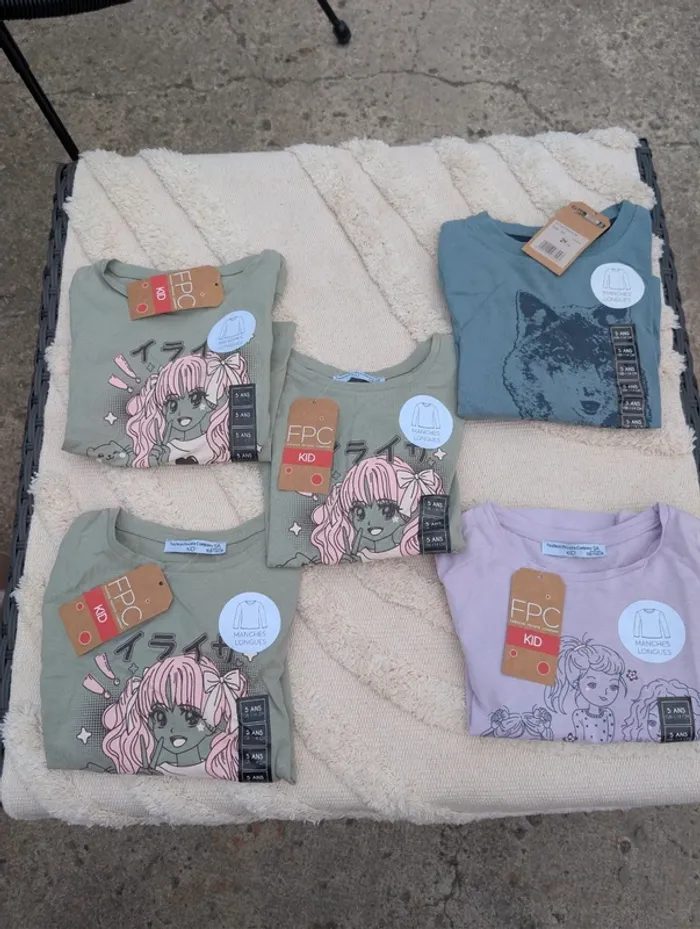 Lot de 5 t-shirts manches longues Fpc et npo Neuf avec étiquette 5 ans #lot #lot5ans #groslot #enormelot #neuf #lotneuf #fpc #npo #5ans #tsgirtmancheslongues