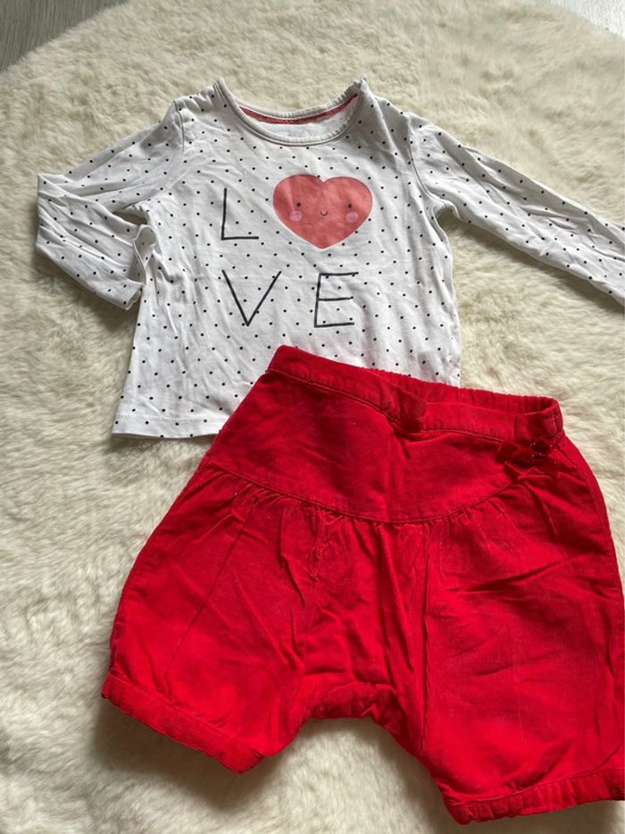 Ensemble 36 mois - 92 cm - un short en velours rouge orchestra - un haut manches longues à pois love C&A En très bon état Réductions sur lot Retrouvez tout le 92 cm fille ici : #camillele31_92cmfille