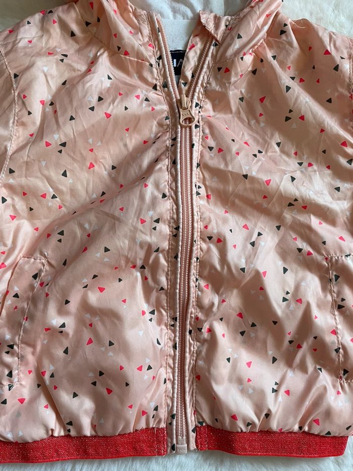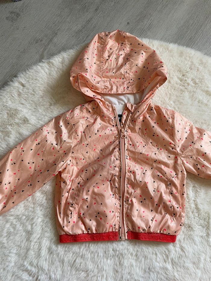 Veste de pluie - kaway kiabi 24 mois - 86 cm Couleur abricot imprimé triangles Avec capuche En très bon état Réductions sur lot Retrouvez tout le 24 mois fille ici : #camillele31fille24mois