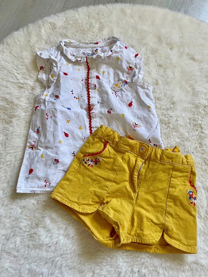 Ensemble été sergent major 3 ans - une blouse sans manches blanche à motif - une short jaune En très bon état Réductions sur lot Retrouvez tout le 3 ans fille ici : #camillele31fille3ans