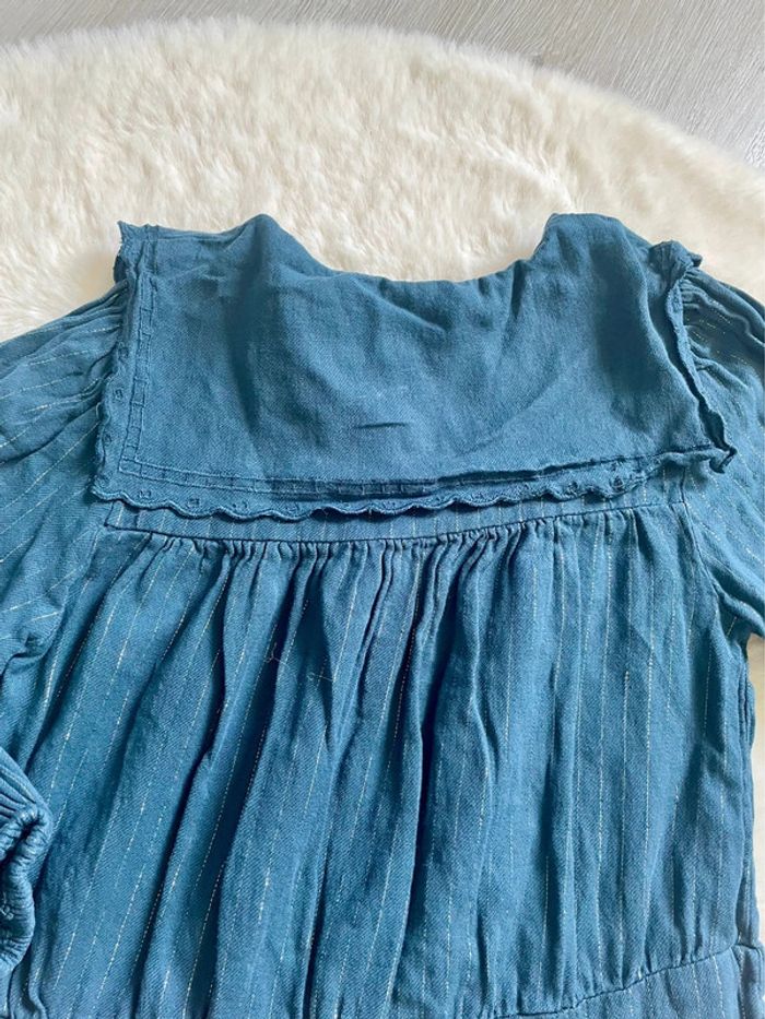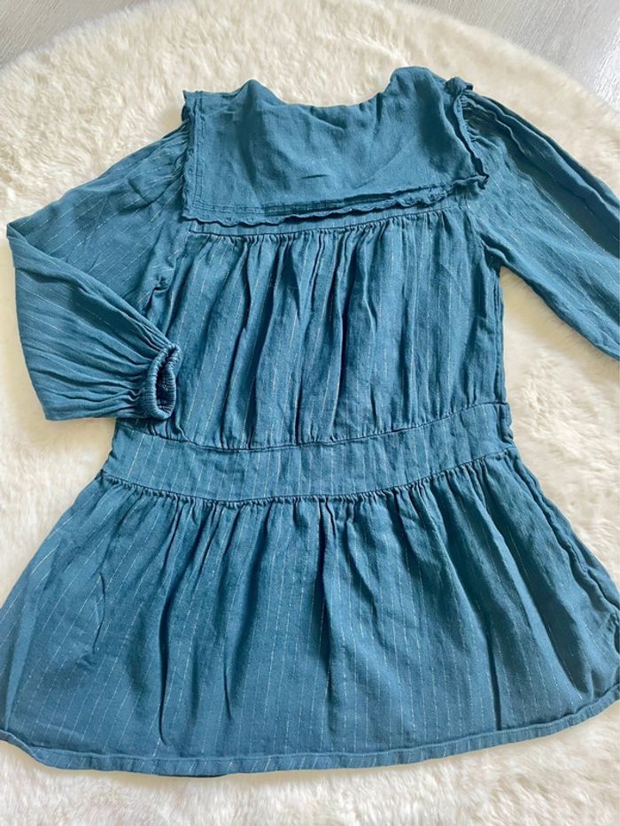 Robe TAO 6 ans Manches longues Couleurs bleu canard avec fils argentés Joli col en broderie anglaise En très bon état Réductions sur lot Retrouvez tout le 6 ans fille ici : #camillele31fille6ans