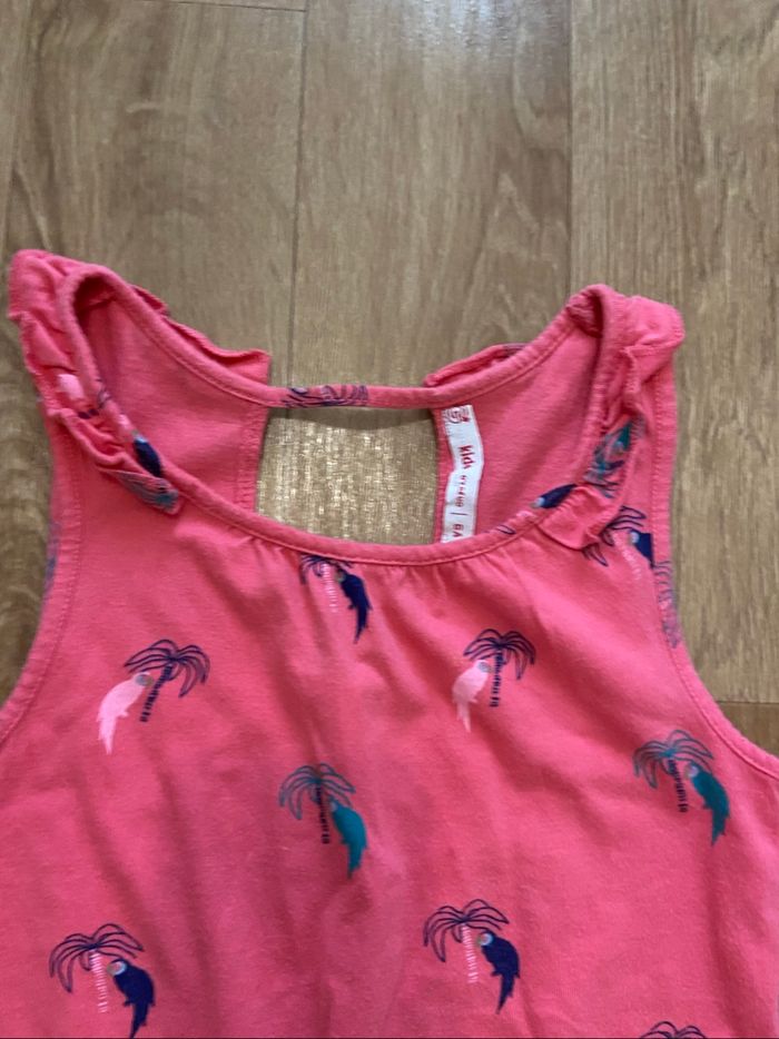 jolie robe rose imprimée de palmiers pour fille de 6 ans de la marque Gemo. Coton