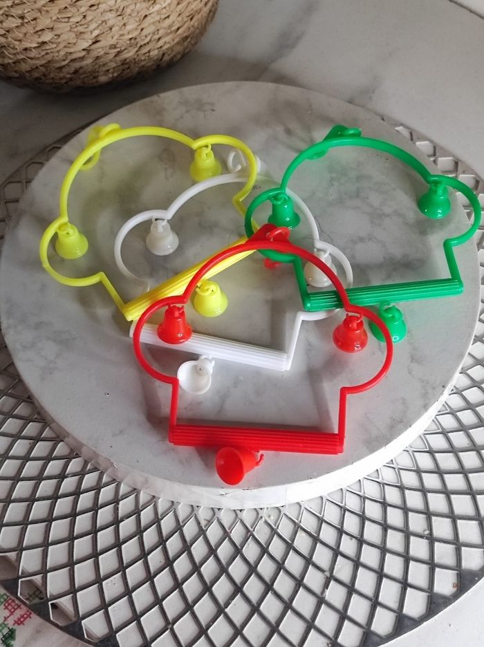 Disponible en plusieurs couleurs ( vert / rouge / jaune et blanc ). Balançoire pour oiseaux ( type perruche, inséparables ). 3 petites cloches non sonores décoratif. 1 balançoire a 3e ou 5e pour 2 balançoires.