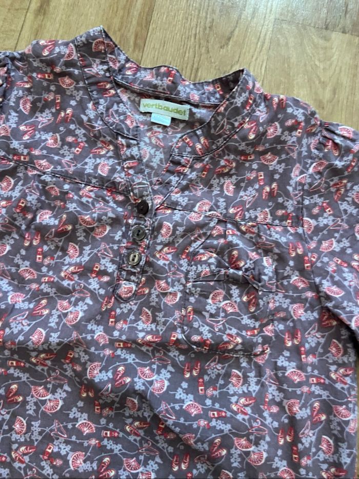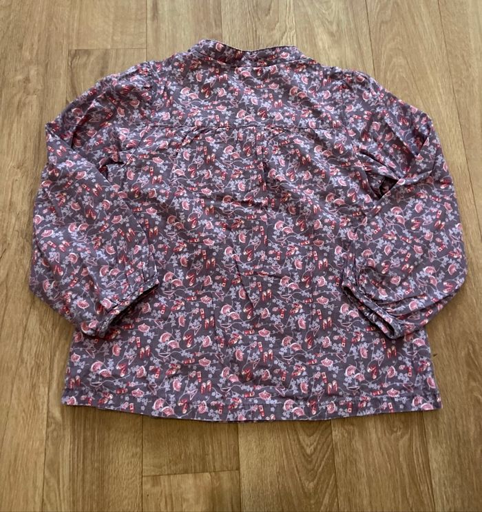Blouse mauve à imprimée Manches longues bouffantes Coton Poche sur le devant