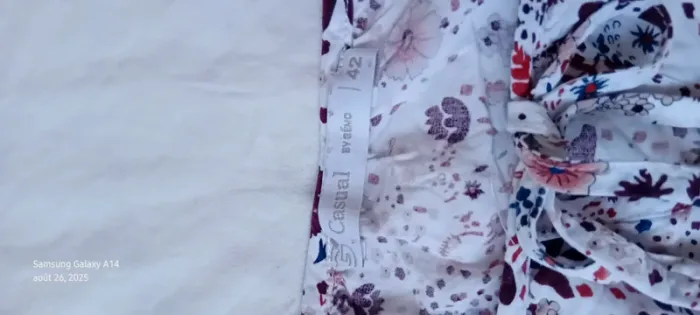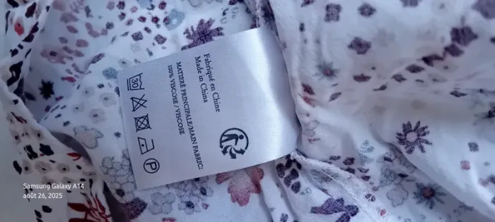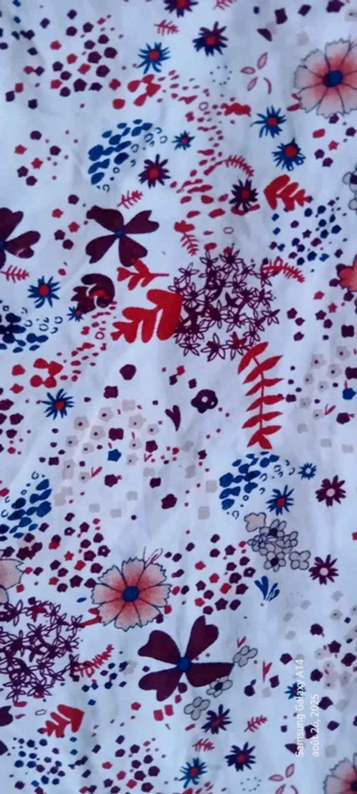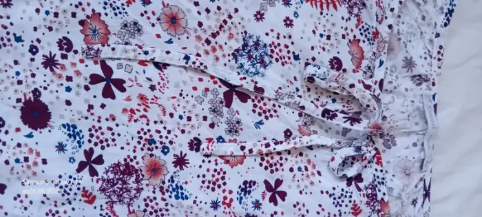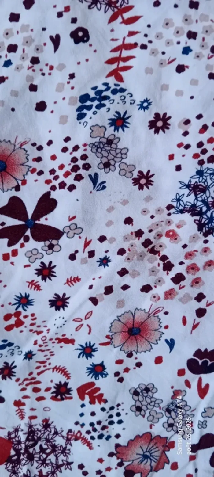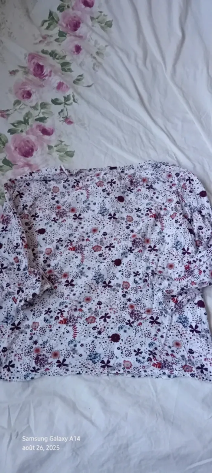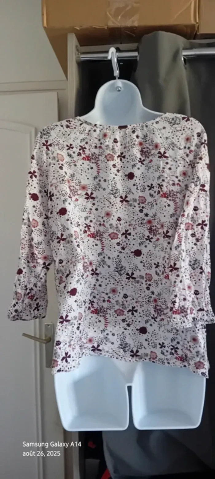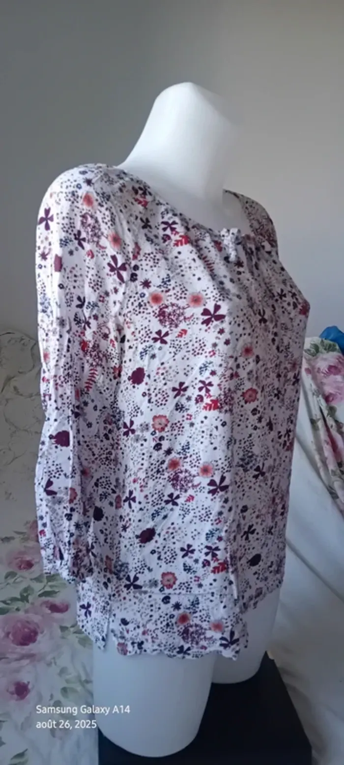 Blouse manches 3/4 en viscose matière légère et fluide col rond et large avec lien à nouer imprimé fleurs bordeaux et marine sur fond blanc manches avec élastique longueur 55 cm largeur aisselles à aisselles 52 cm largeur épaules 40 cm très peu portée en très bon état #midole #midolefemme #midolefemme42 #blouse #blousefemme42 #blousefemmexl #femmexl #femme42 #motiffleurs #imprimefloral casualbygemo #gemo #blouseenviscose