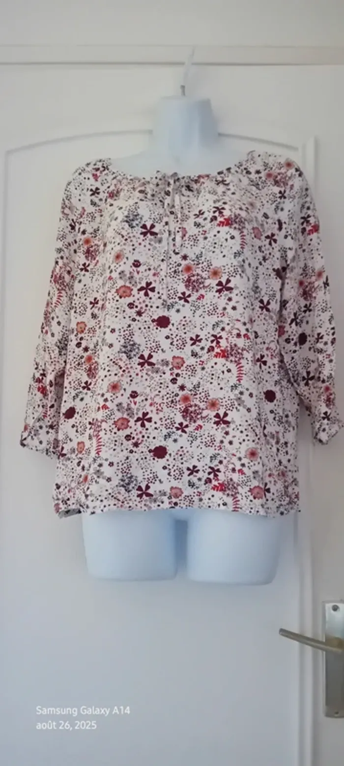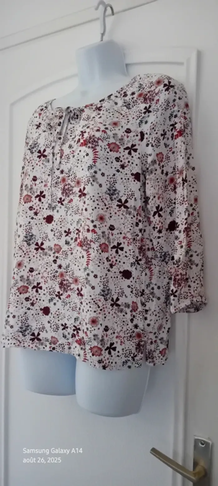 Blouse en viscose manches 3/4 col rond avec lien imprimé fleurs femme 42 casual by gemo - photo numéro 20