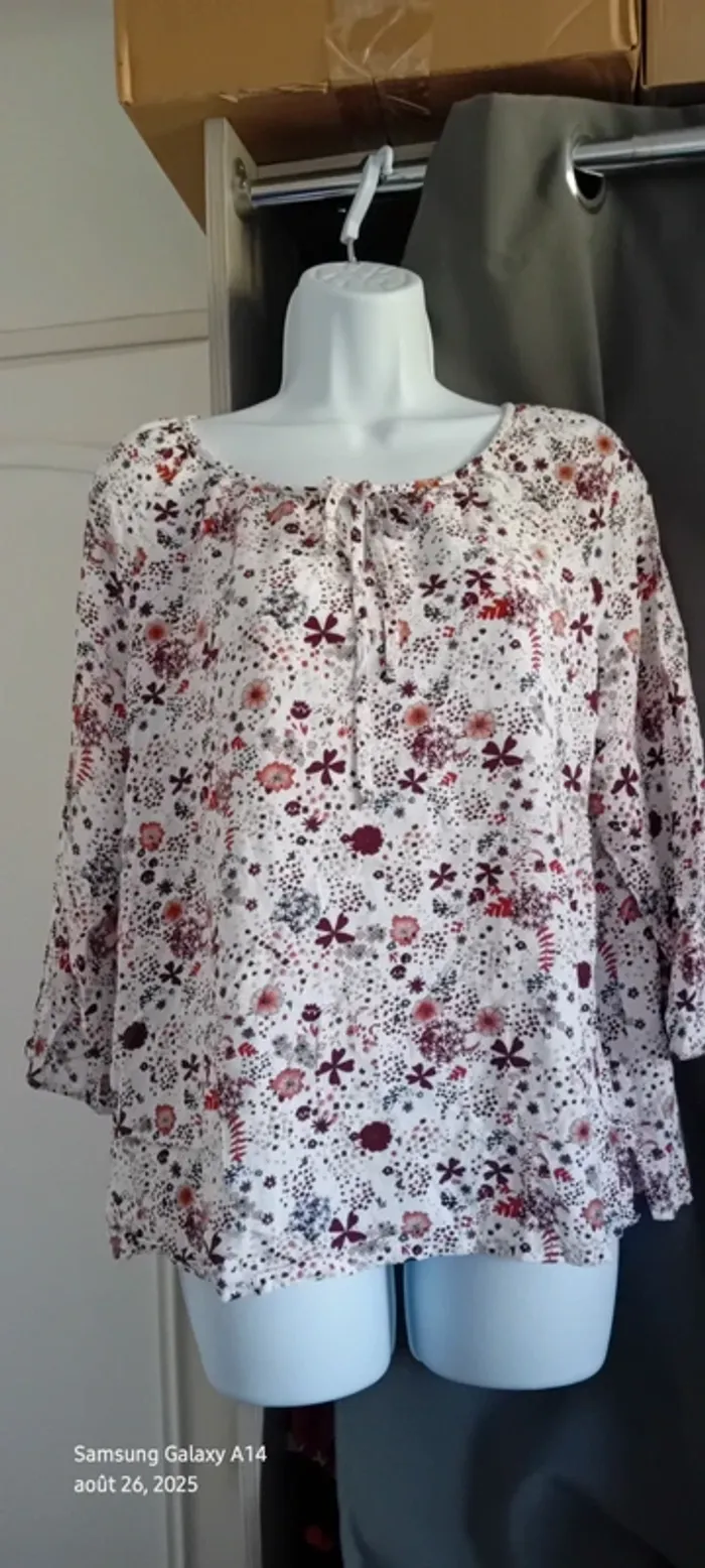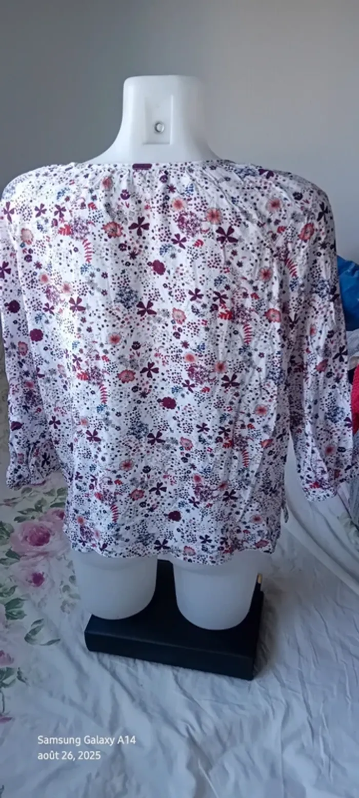 Blouse en viscose manches 3/4 col rond avec lien imprimé fleurs femme 42 casual by gemo - photo numéro 18