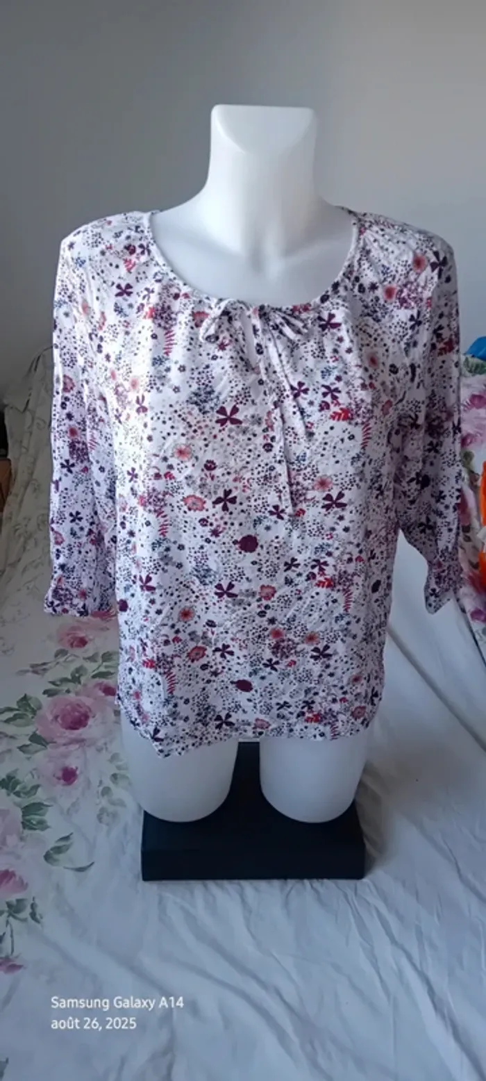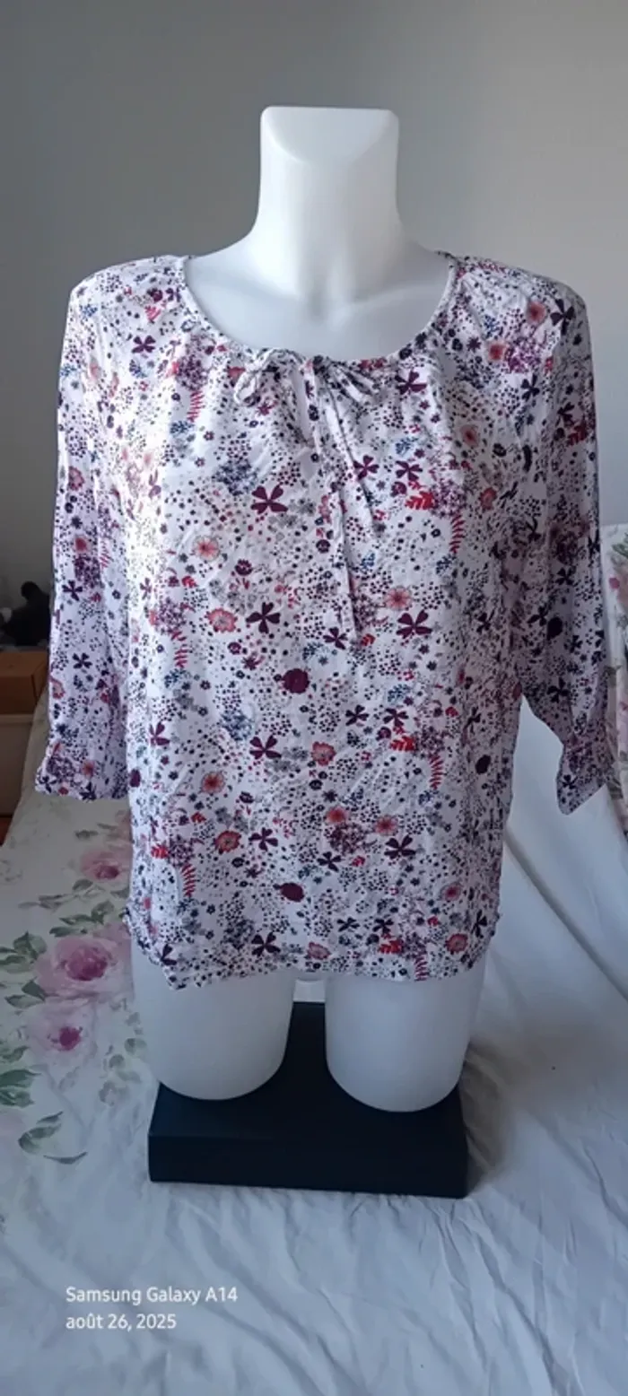 Blouse en viscose manches 3/4 col rond avec lien imprimé fleurs femme 42 casual by gemo - photo numéro 1