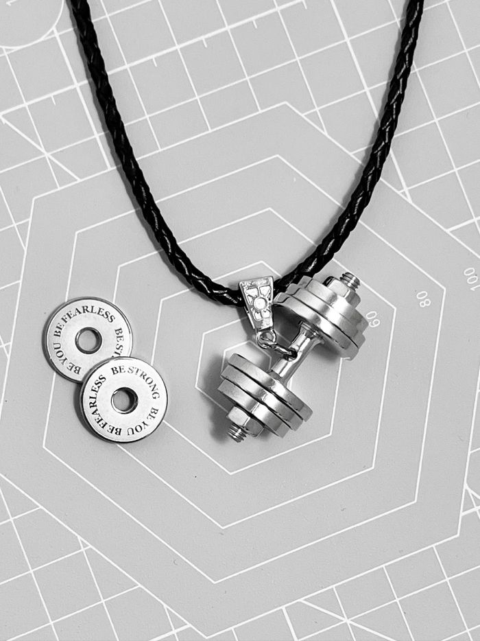 Quand l'élégance rappelle votre engagement envers la force et la discipline. Un collier conçu par mes soins à mon atelier pour les garçons qui transforment la sueur en succès. Collier ajustable en cuir noir tressé / haltère en métal dissociable Vous pouvez charger le poids à votre guise ! Qu'en dites-vous ? Prêt à level up ?