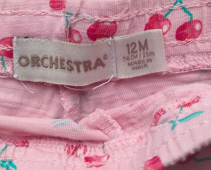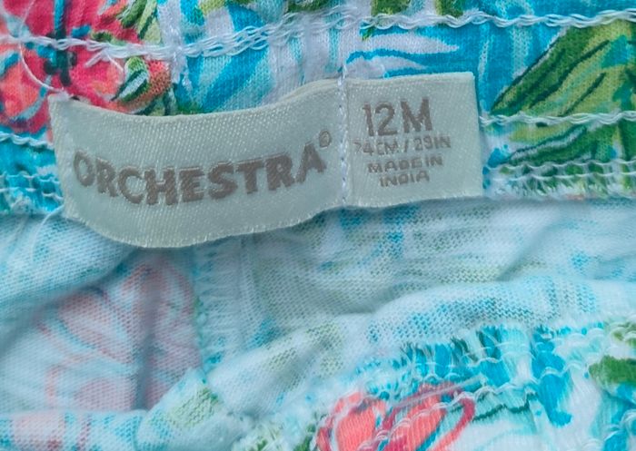 Lot de 2 shorts rose et bleu à motif en très bon état de la marque Orchestra pour fille taille 12 mois/ 1 ans