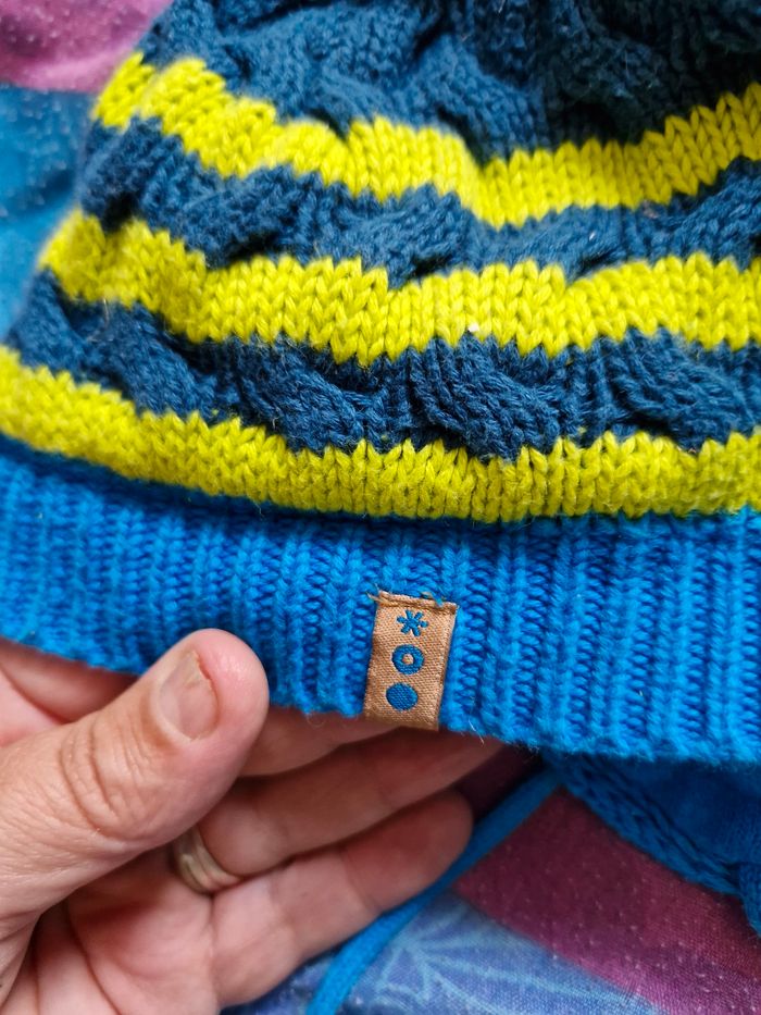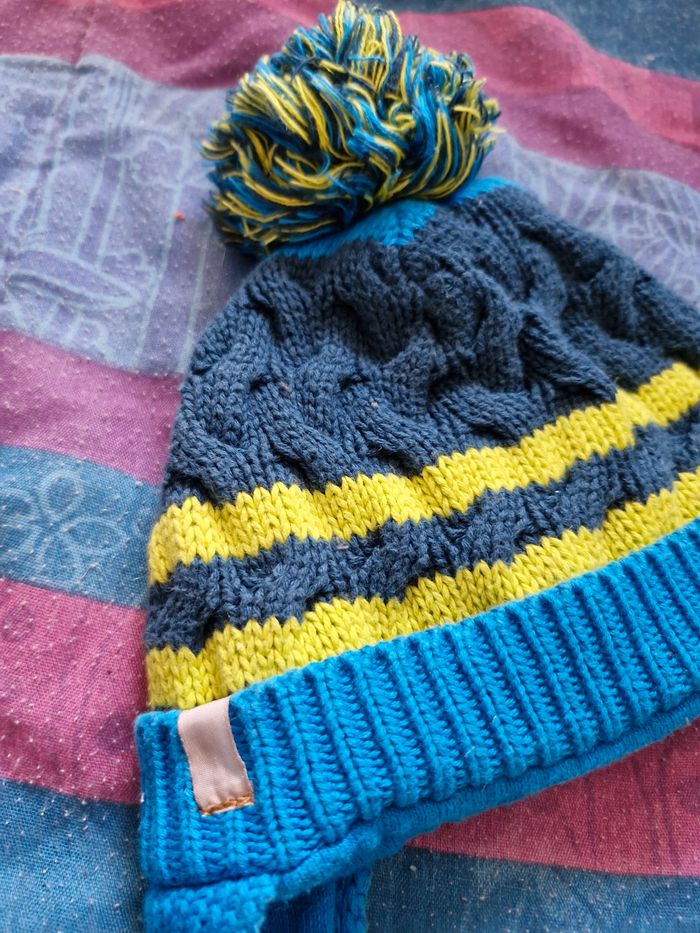 Joli bonnet duo de bleus rayé jaune avec petit pompom au sommet caches oreilles de chaque côté avec liens finition mini-pompons à nouer pour maintenir le bonnet bien en place sur la tête et les oreilles de votre bébé. Extérieur maille et doublé interieur polaire Taille de 0 à 3 mois/42cms Je n'ai pas remarqué d'anomalie N'hésitez pas à créer un lot pour profiter des réductions actives dès 2 articles #naya59199hiver #naya59199bébé #naya59199bonnet