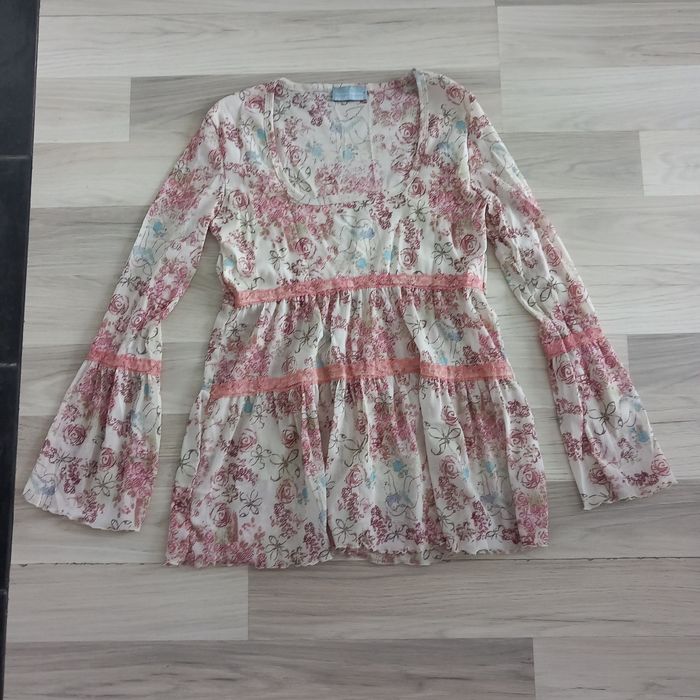 Chemisier femme beige imprimé à manches longues Fashion Express taille 38 - photo numéro 2